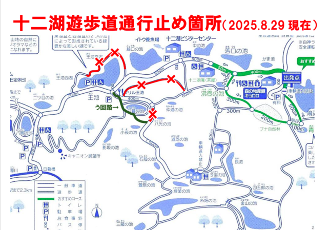 十二湖遊歩道一部う回路のご案内(2025.8.29現在)