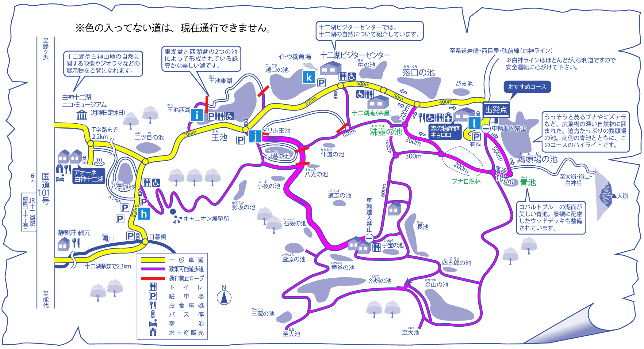 | 近隣スポット | 鶏頭場の池:すぐ 鶏頭場の池:すぐ 青池:徒歩 約10分 ブナ自然林:徒歩 約10分 沸壺の池:徒歩 約30分 |