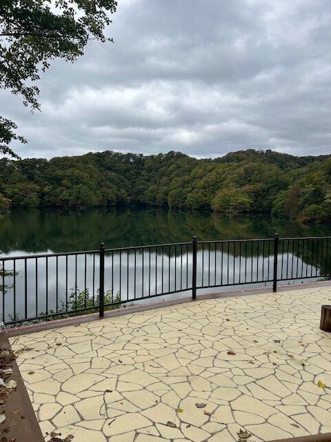 王池湖畔に佇む展望デッキ。四季折々の王池を一望できます。